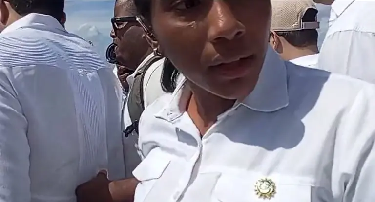 La Romana.- Una agente de la seguridad presidencial protagonizó un momento de tensión con el reportero Gabriel Ramón de Noticias Telemicro, cuando el comunicador trataba de obtener declaraciones del presidente Luis Abinader durante una actividad realizada en la isla Catalina, La Romana.Gabriel se en