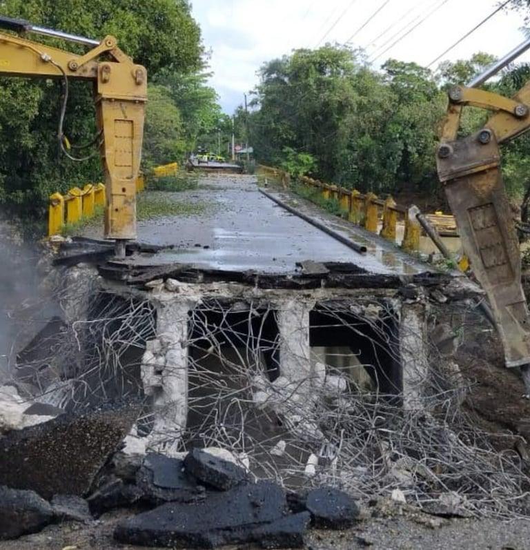 Dan inicio a demolición del puente colapsado sobre el río Camú en Puerto Plata